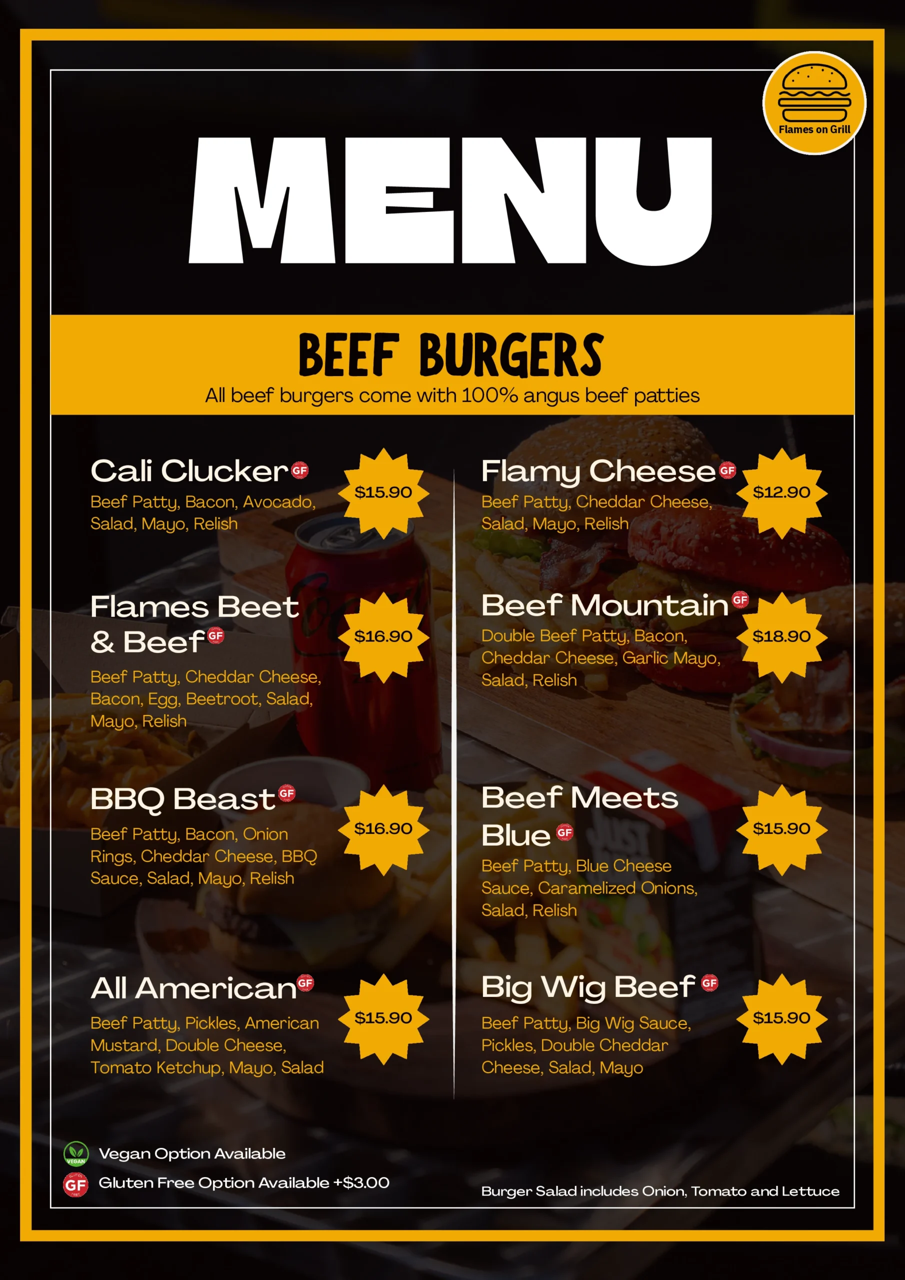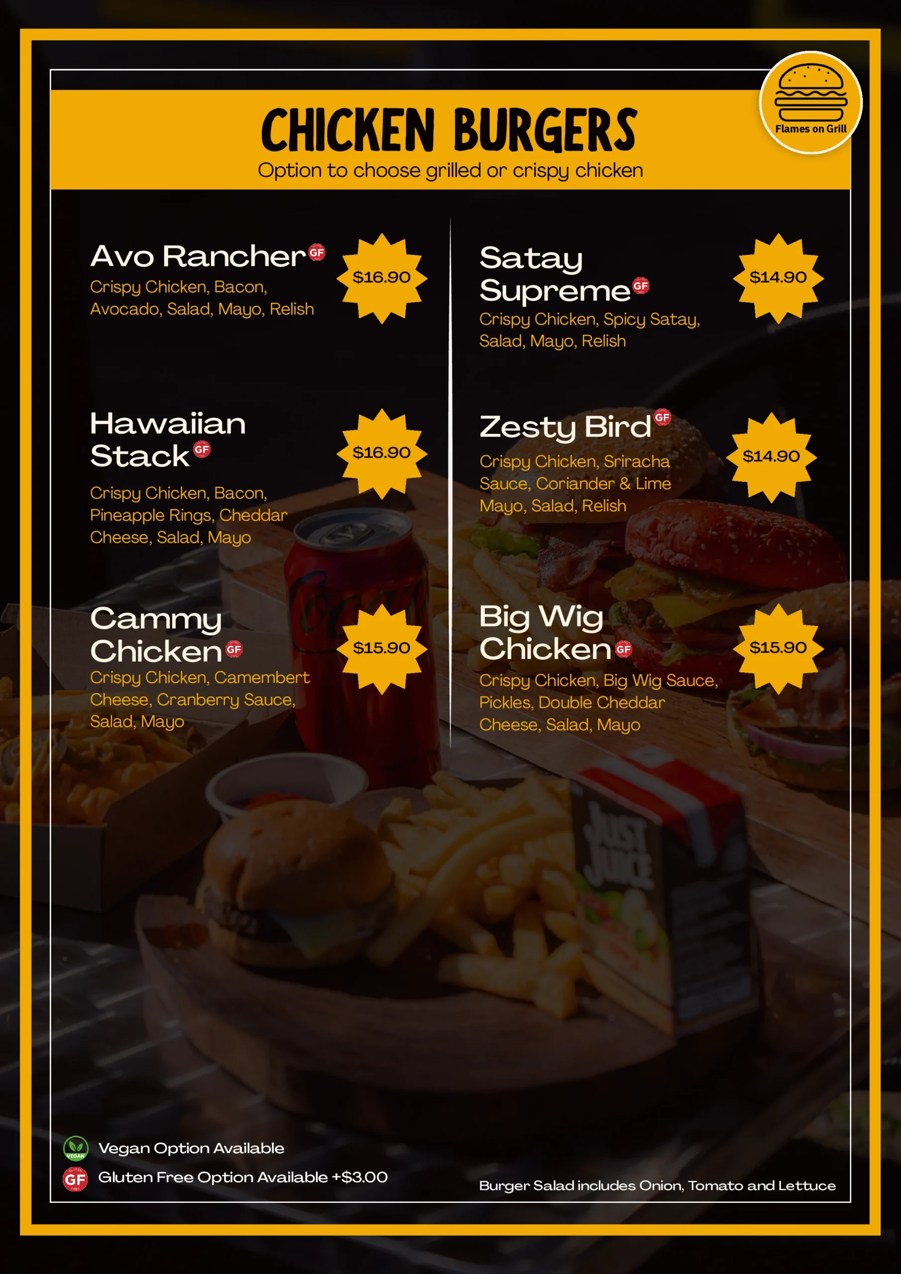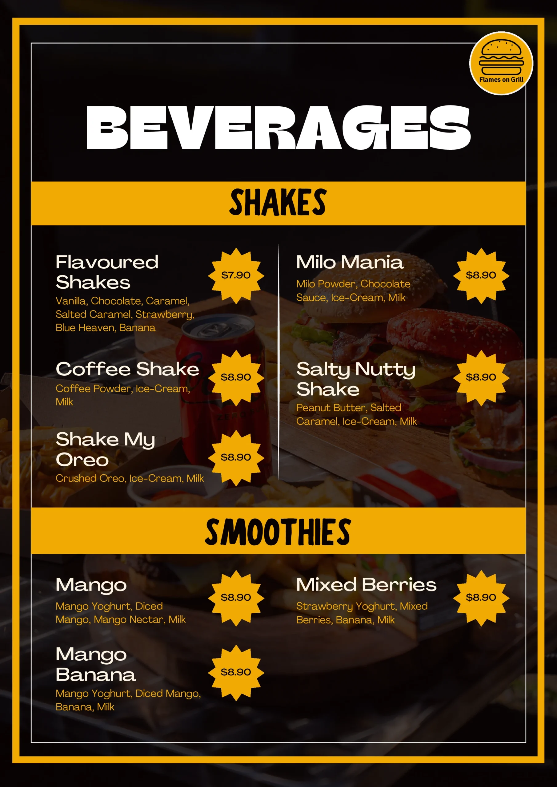 From flame-grilled Angus beef burgers to crispy fried chicken, loaded fries, and signature shakes — our menu is crafted to satisfy every craving. Have a look at some of our favourites below, then tap through to see the full range of delicious options waiting for you.