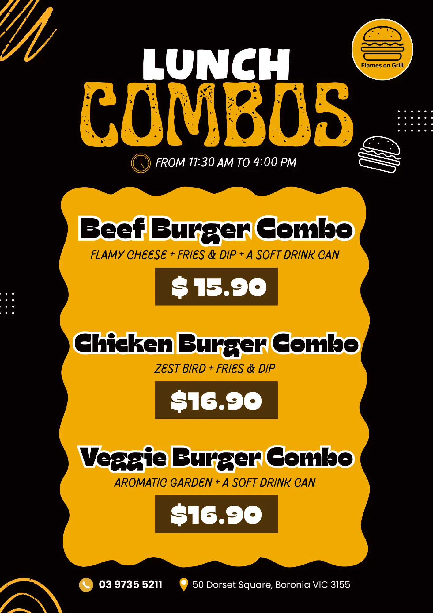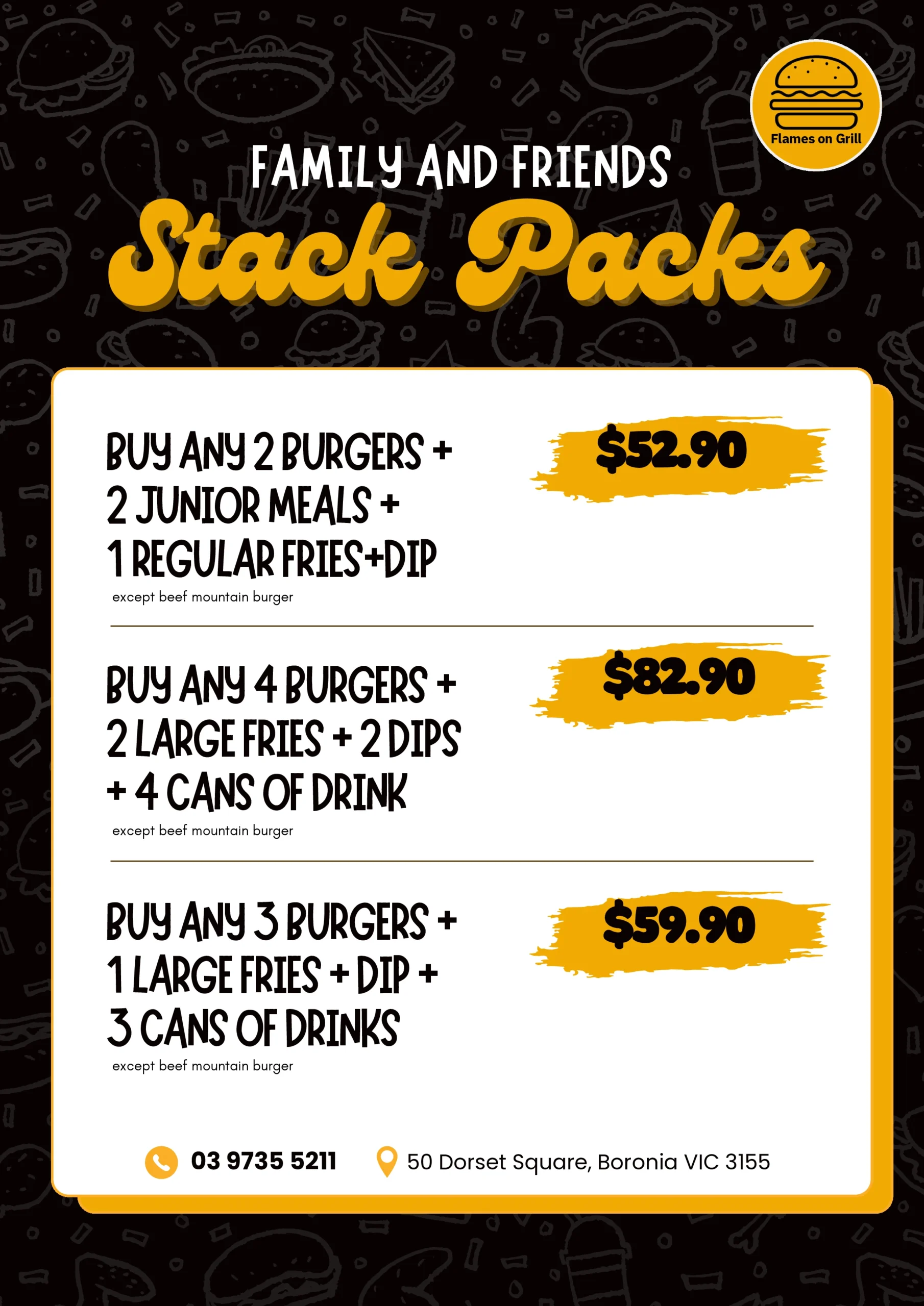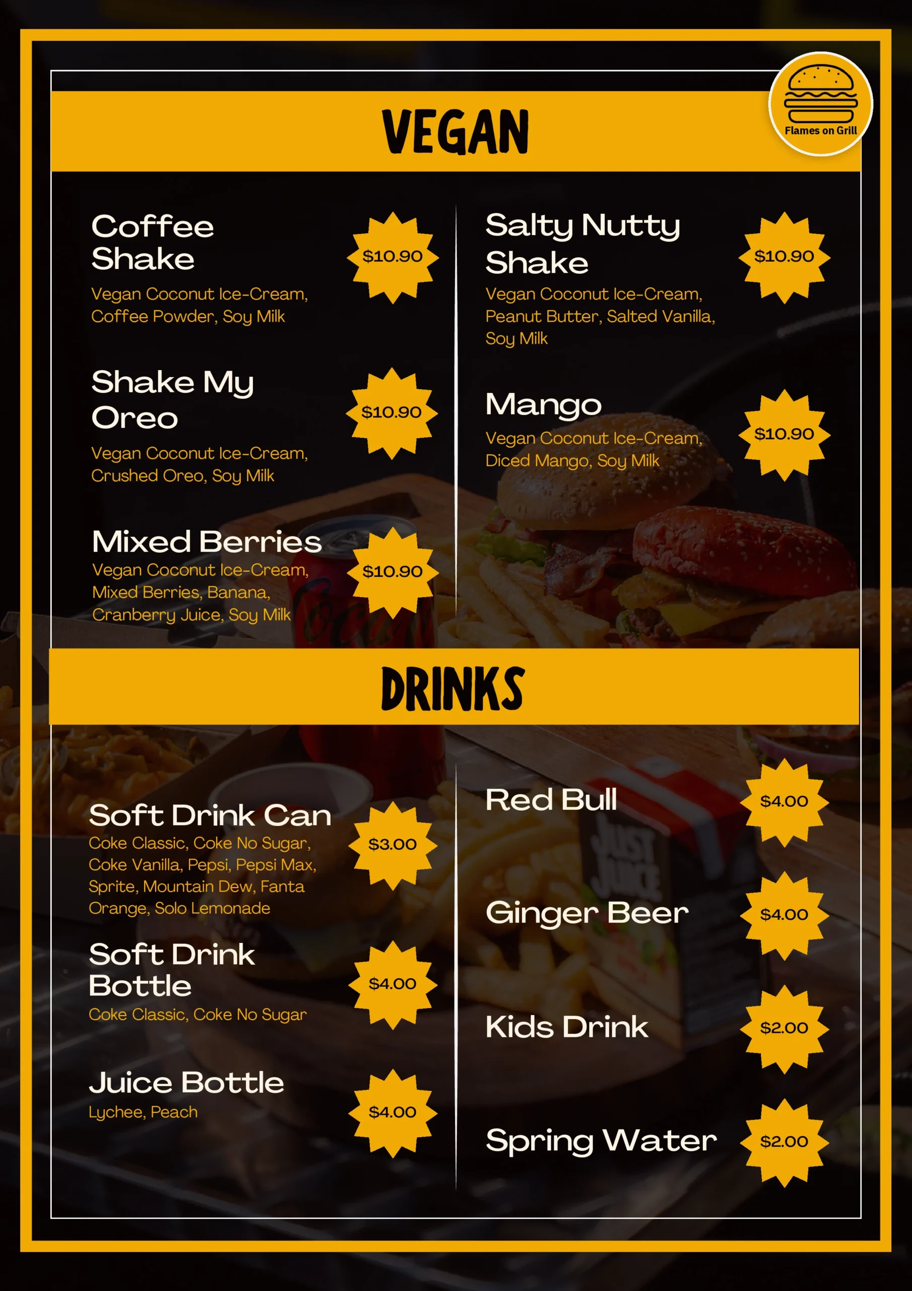 From flame-grilled Angus beef burgers to crispy fried chicken, loaded fries, and signature shakes — our menu is crafted to satisfy every craving. Have a look at some of our favourites below, then tap through to see the full range of delicious options waiting for you.